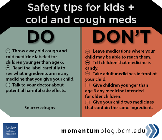 “The U.S. Food and Drug Administration now recommends against the use of over-the-counter cough and cold medications in children younger than 6,” Dr. Julieana Nichols, assistant professor of pediatrics – academic general medicine at Baylor College of Medicine, said. “They do not work in this age group, and there have been too many reported deaths and overdoses in young children. There is no benefit and too many risks associated with these children taking them.”