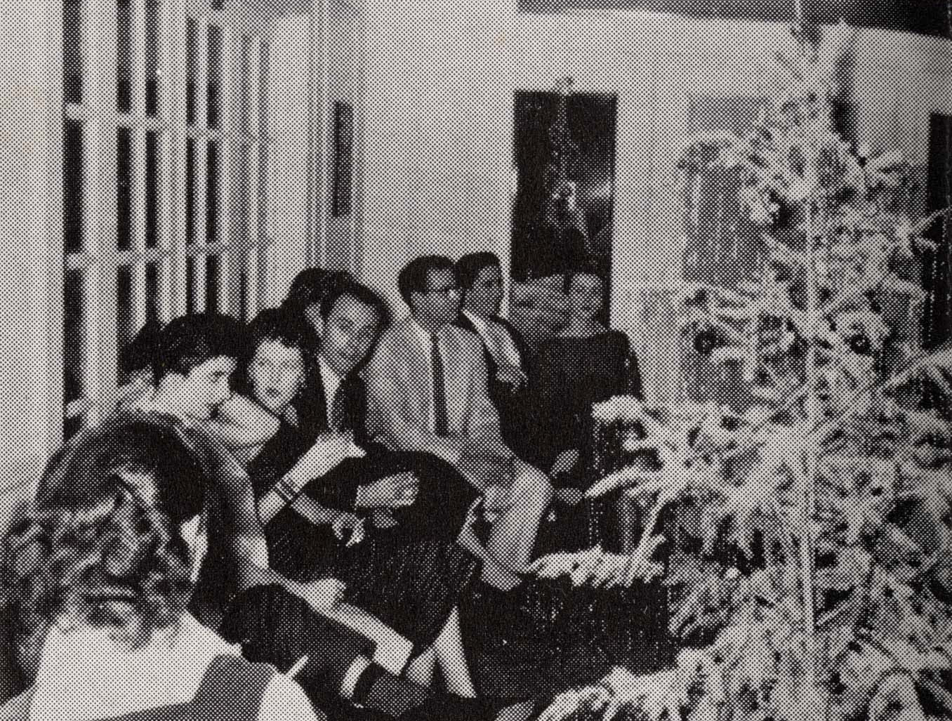 We don’t have a lot of details about the photo, as the page in the yearbook was a collage of the medical fraternity’s events dubbed “Phi Chi Salient Scenes.” Though many yearbooks from this same era note that the College’s Greek organizations often held mixers for their members around the holiday season.