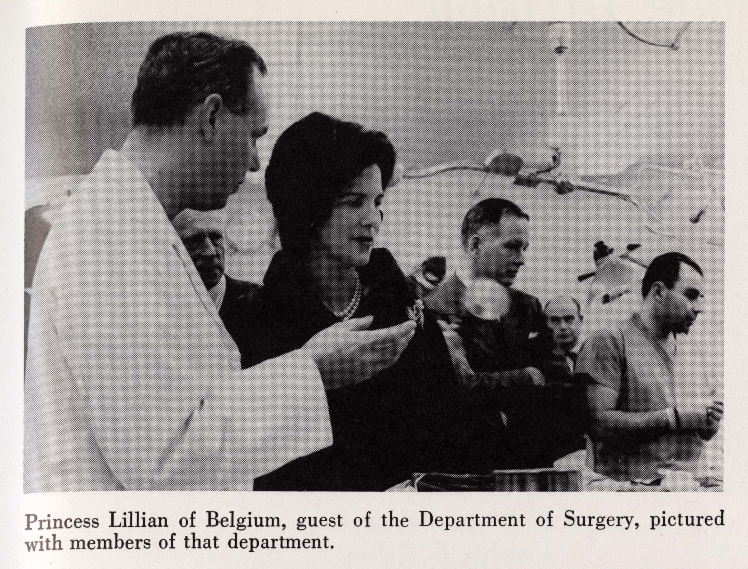 In this photo, from the 1962 Aescalapian yearbook, courtesy Baylor College of Medicine Archives, Princess Lillian visits with our Department of Surgery staff.