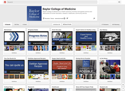 Baylor College of Medicine joined millions of pinners, with the launch of an official Pinterest presence.