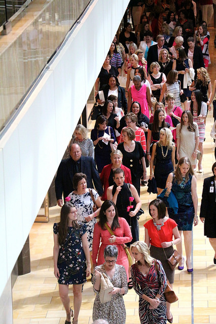 More than 500 women (and some men) met in the Shoe Salon at Neiman Marcus for a Champagne toast and short “walk with purpose” through the Houston Galleria to the Westin Galleria Ballroom, where the luncheon and style show, featuring Neiman Marcus’ top runway collections, was held.