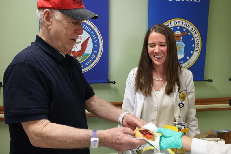 “Another one of our veterans, a Marine, started crying tears of joy. He said that we made his week by coming by his room, sharing treats and taking the time to chat. His laugh was absolutely contagious. This made me want to implement something similar in my daily practice of medicine so that I can not only bring healing, but also bring joy,” she said.